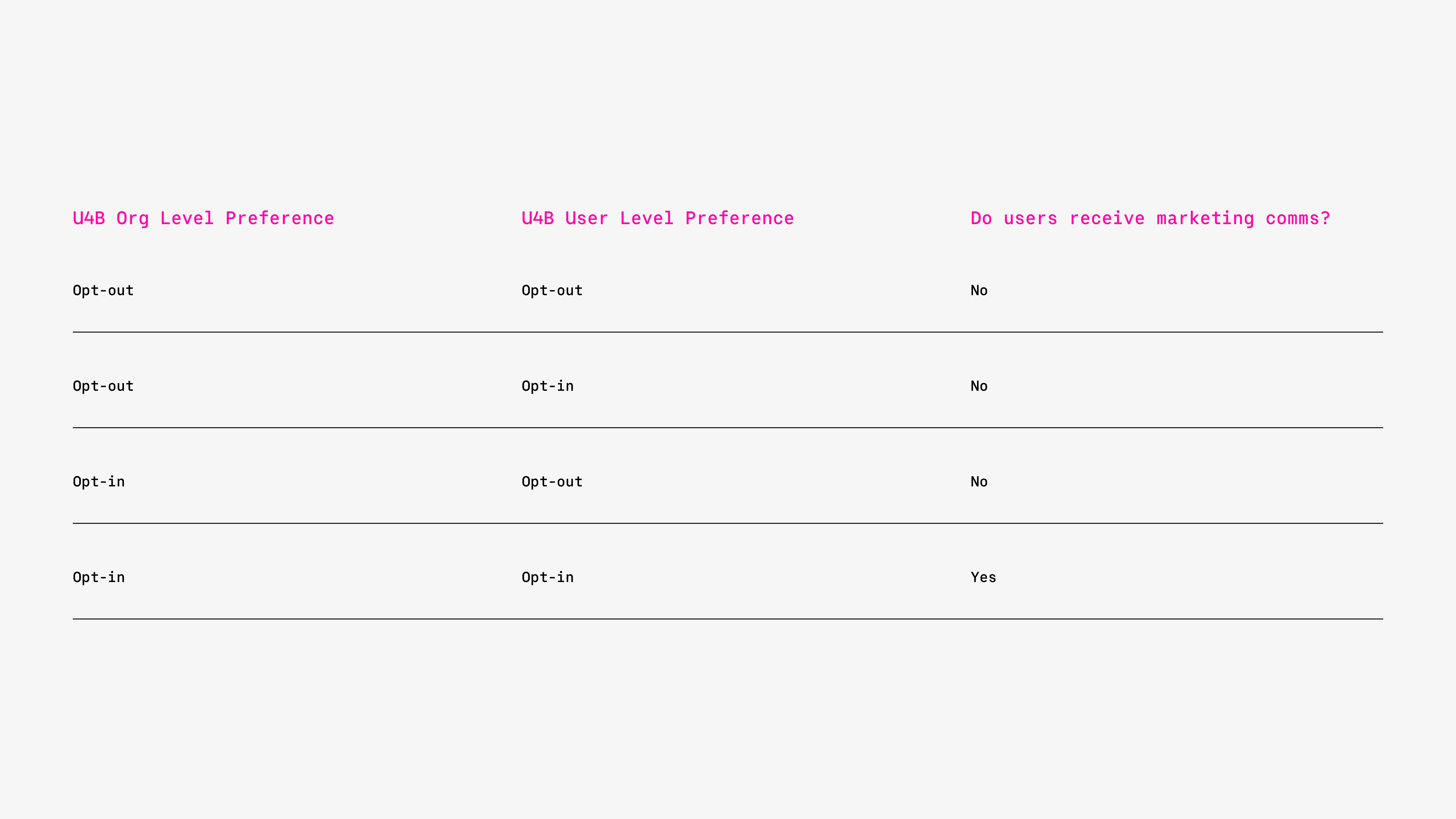 Before opening Figma, I needed to understand the preference hierarchy. U4B preferences operate on two levels: organization and individual, with opt-out always winning. This meant the UI had to communicate not just what a user's preferences were, but why certain controls might be locked.